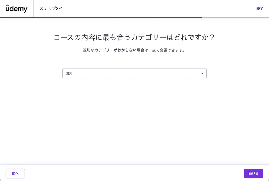 私の場合はJavaScriptが題材ですから、「開発」を選択して「続ける」ボタンをクリックします。