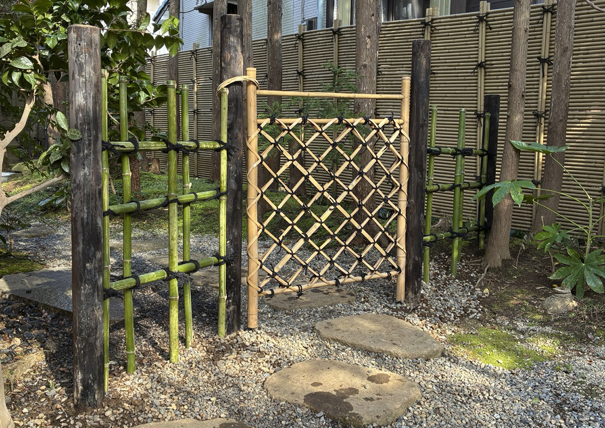 実は、2021年令和3年11月ぐらいに、4本の支柱のあるところに胴縁と立子を設置して男結びとかいづる結びをしました。